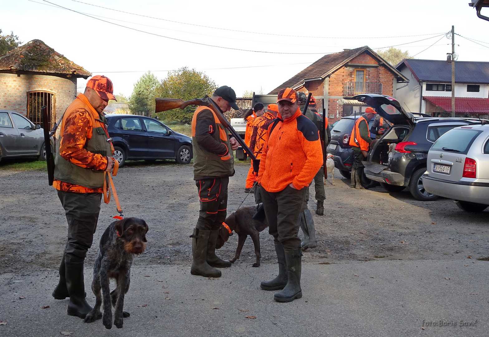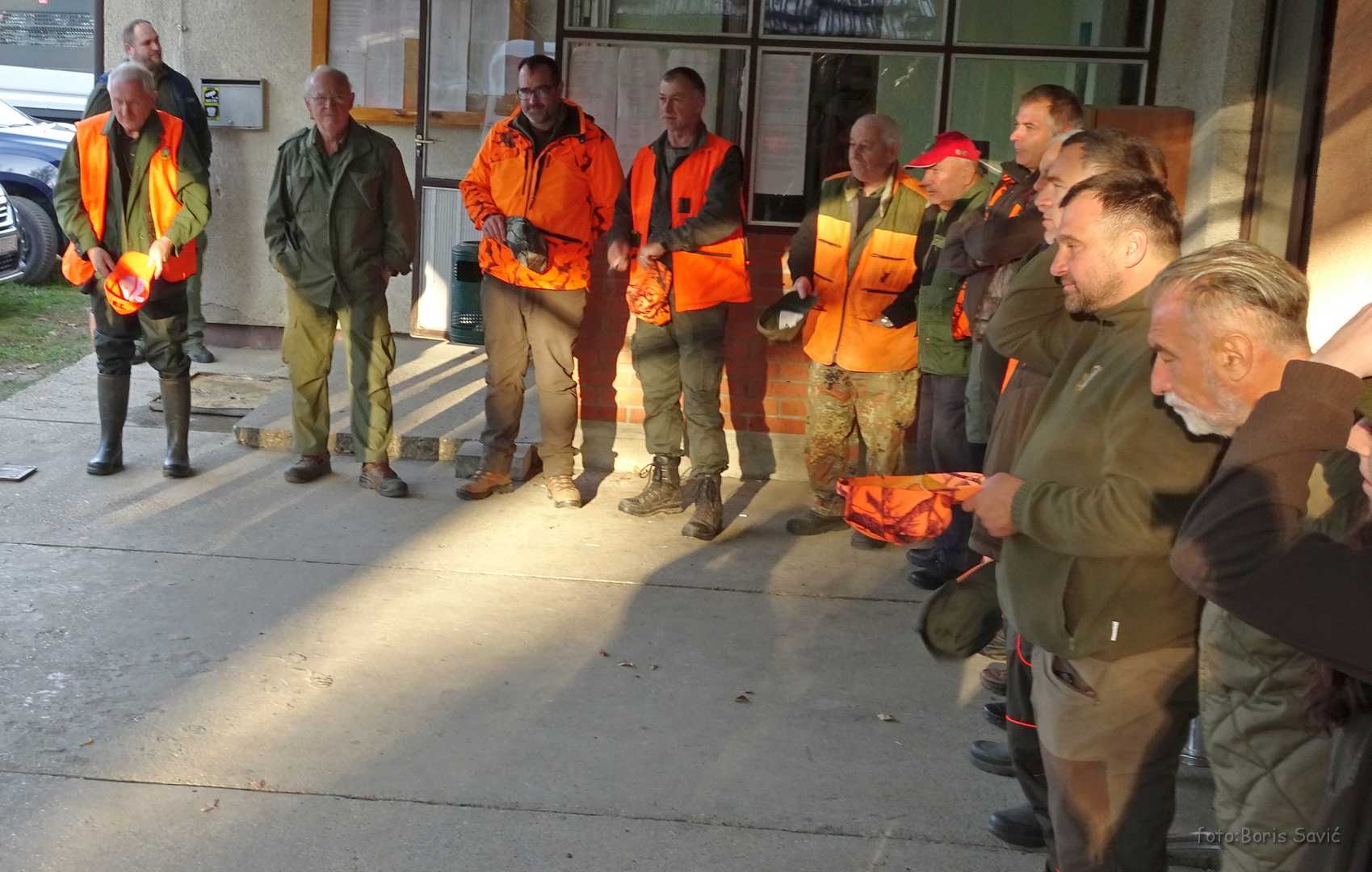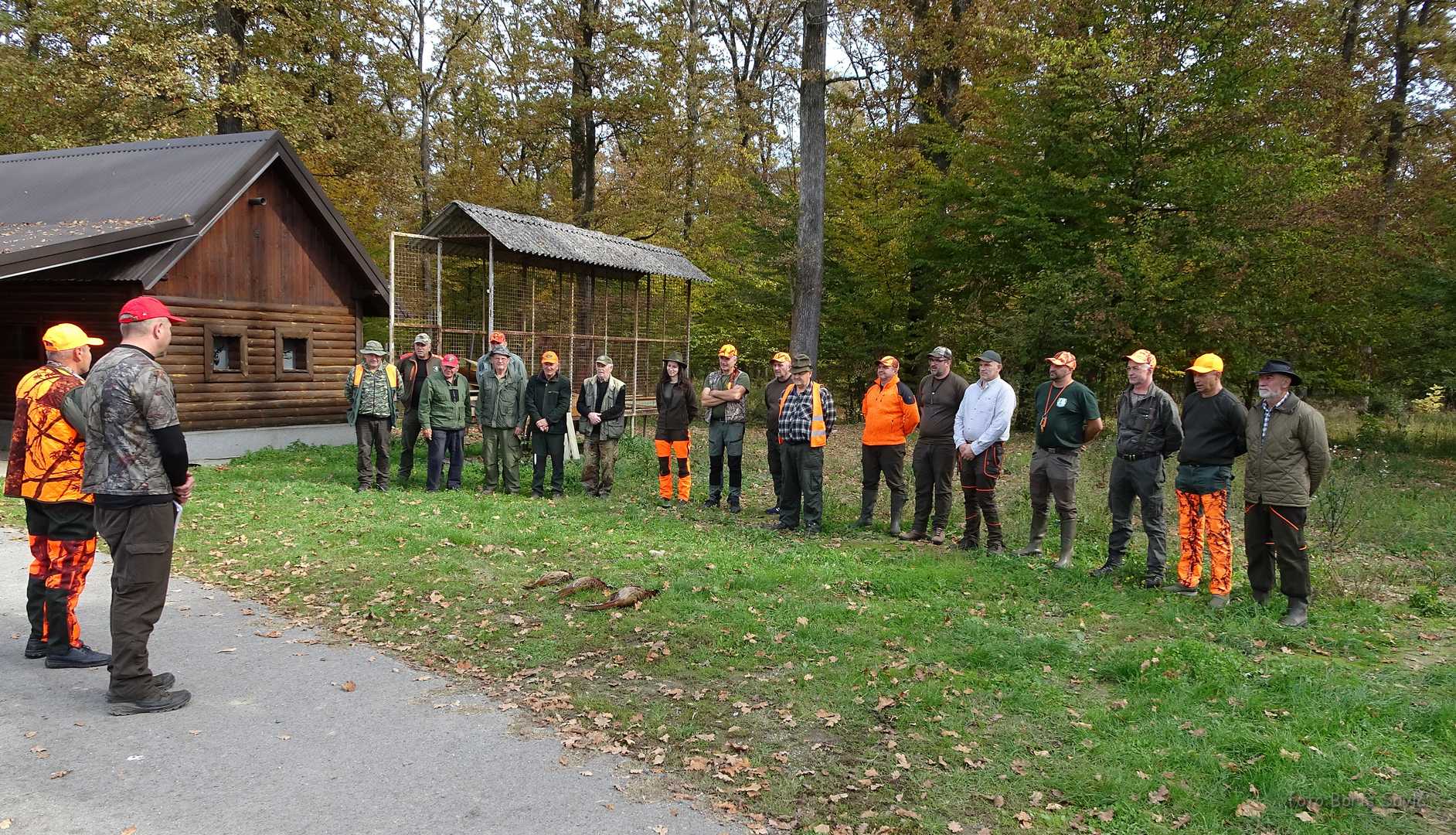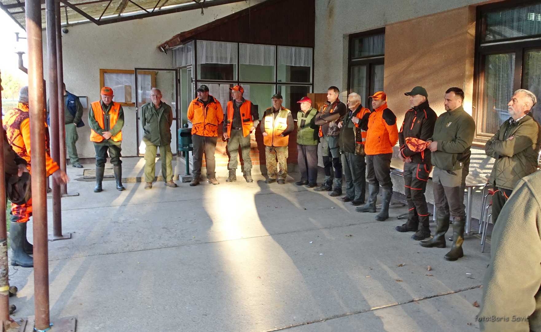 Prekrasan jesenski dan i okupljanje pred velikim, sada nanovo uređenim i obnovljenim lovačkim domom. Naravno gužva nije velika, ipak dvadesetak lovaca u dobrom raspoloženju prolazi evidenciju dolaska i nastavlja jutarnje druženje.
