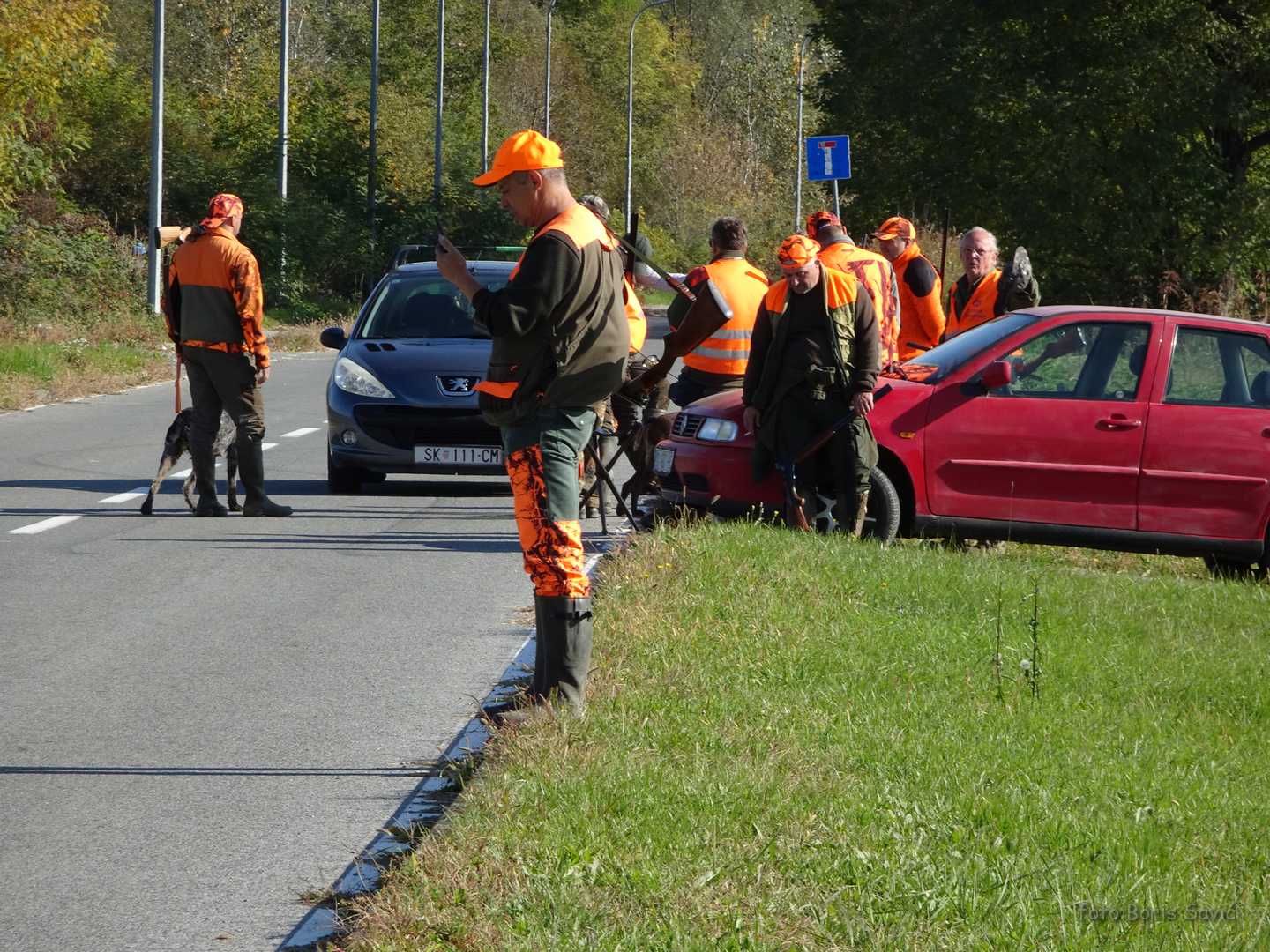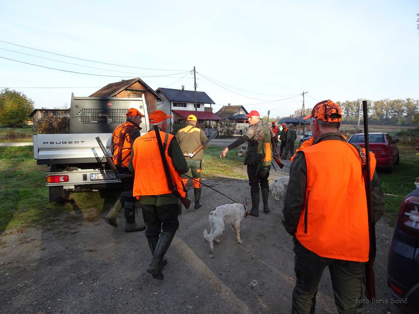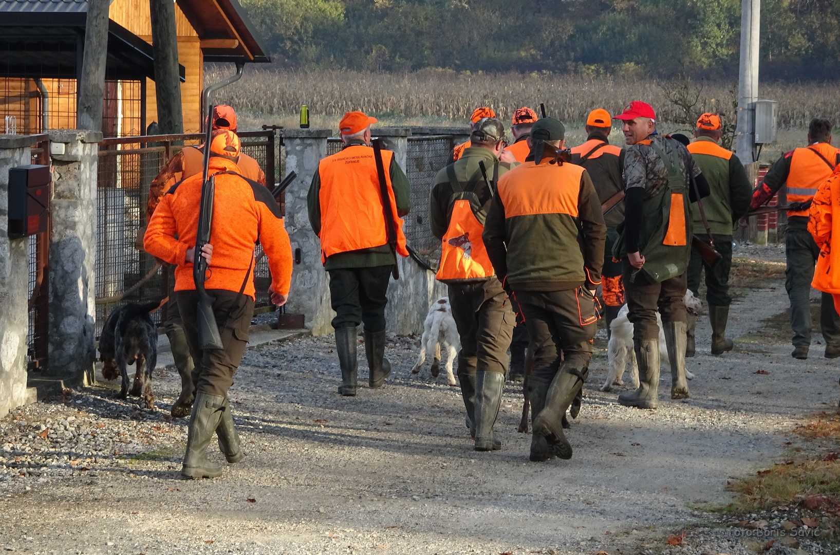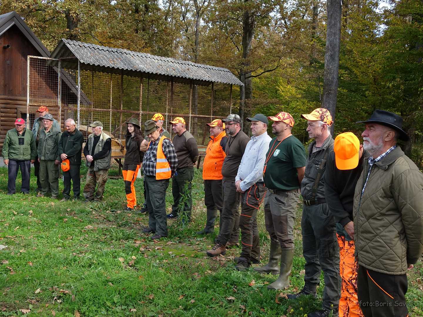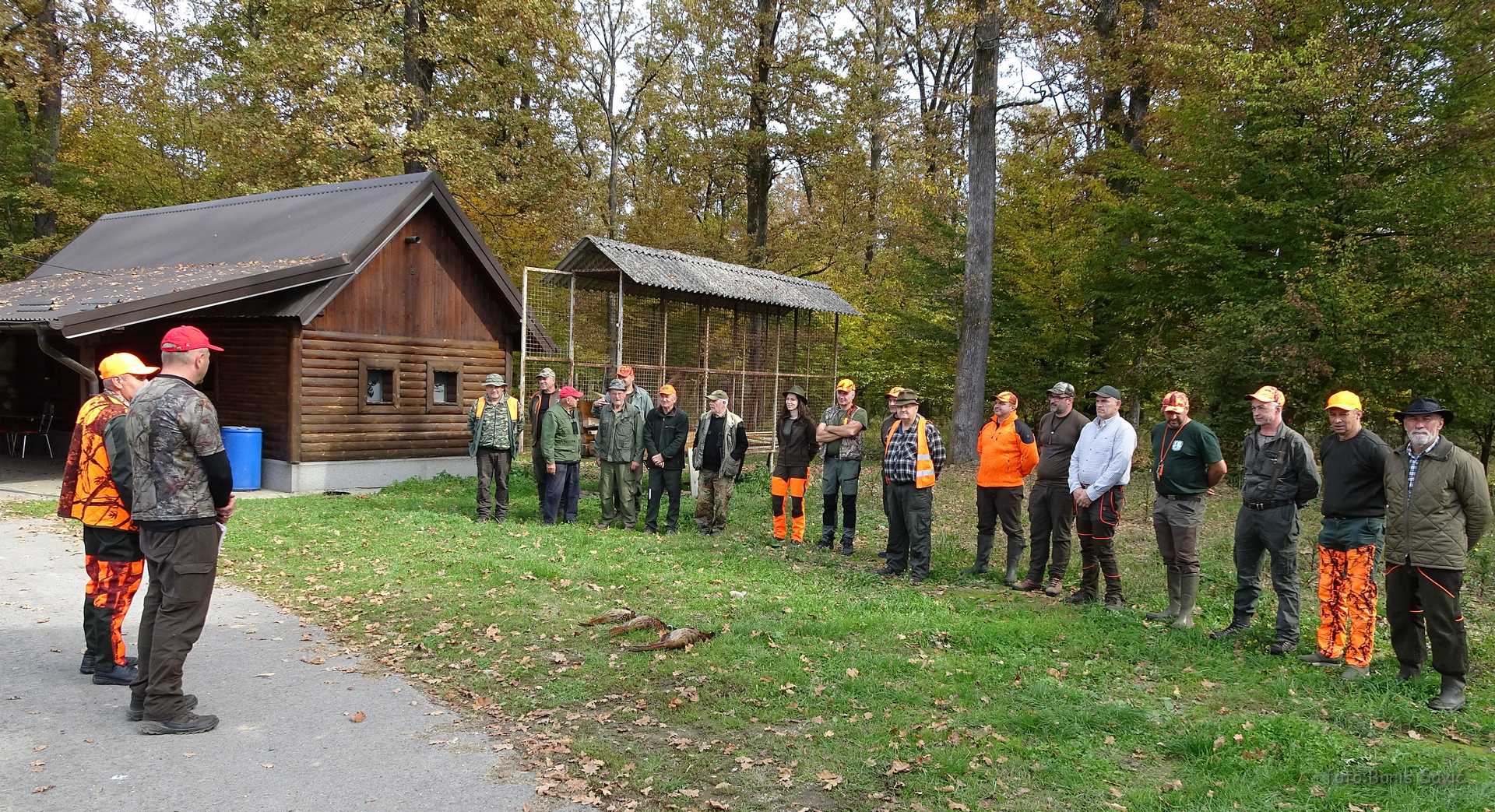 Prekrasan jesenski dan i okupljanje pred velikim, sada nanovo uređenim i obnovljenim lovačkim domom. Naravno gužva nije velika, ipak dvadesetak lovaca u dobrom raspoloženju prolazi evidenciju dolaska i nastavlja jutarnje druženje.