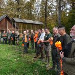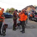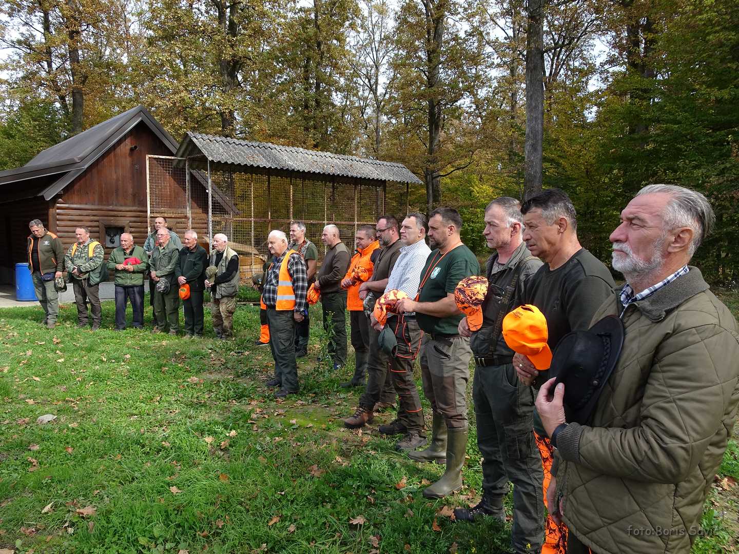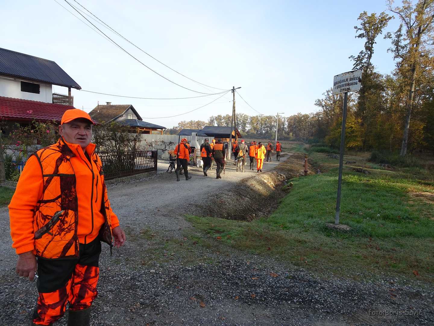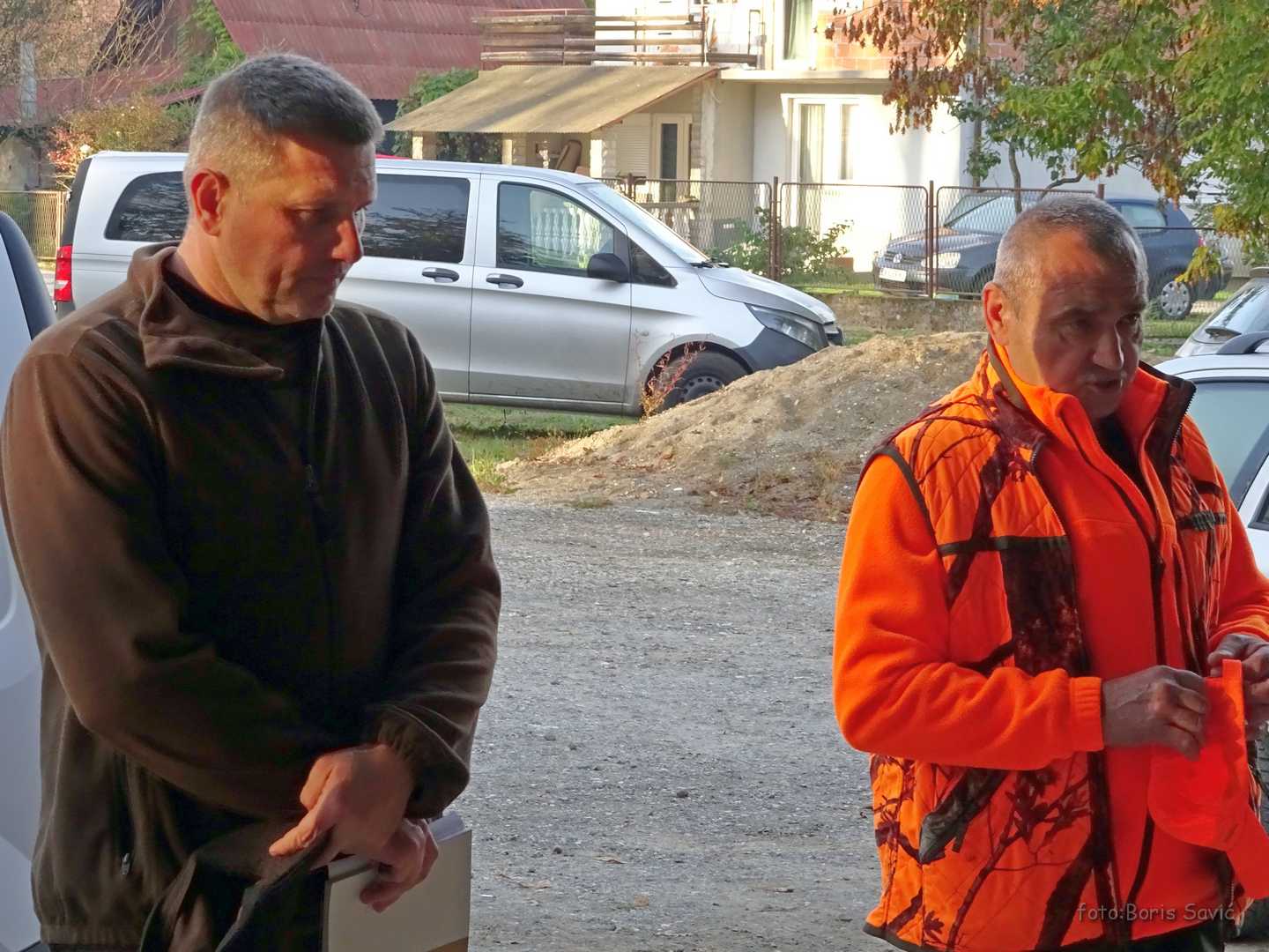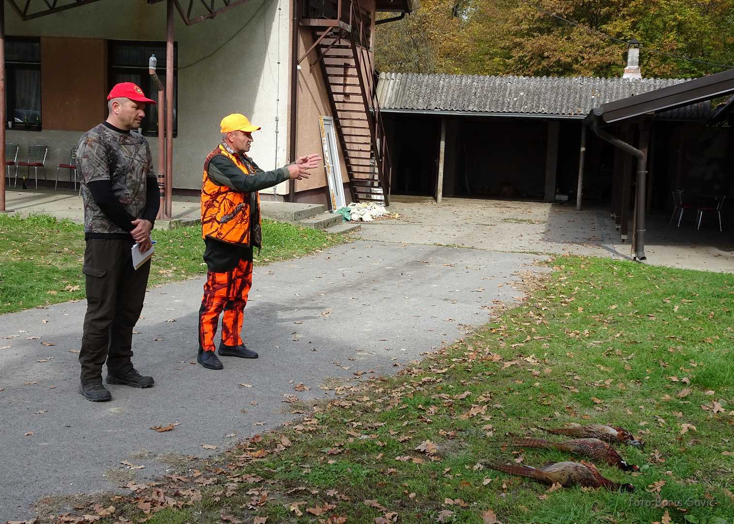 Prekrasan jesenski dan i okupljanje pred velikim, sada nanovo uređenim i obnovljenim lovačkim domom. Naravno gužva nije velika, ipak dvadesetak lovaca u dobrom raspoloženju prolazi evidenciju dolaska i nastavlja jutarnje druženje.