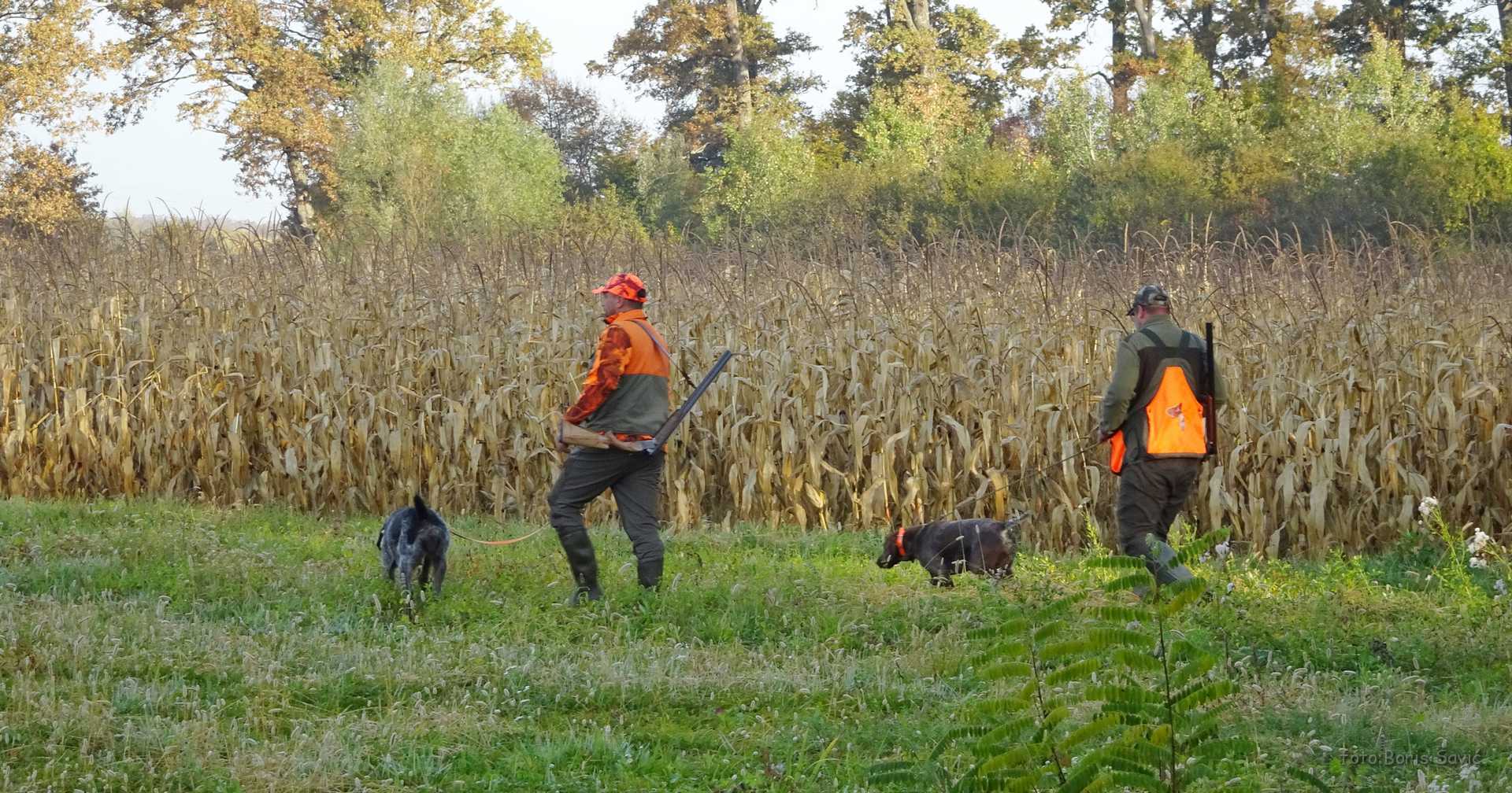 Kreće se iz prekrasne, stare i očuvane šume Piškornjač i lov počinje odmah, teren baš kakav treba, kukuruz i sveže oranice se smjenjuju sa suhom travom, grmljem i zapuštenim parcelama. Na samom početku se vidi bogatstvo fazanske divljači, u nepunih sat vremena osobno sam imao puno pravih tvrdih „fermi“, ali osim jednog fazana sve su bile koke. Malo zbunjujuće za psa ali temeljni fond jednostavno treba zaštititi i sačuvati. Dobra organizacija se vidi i u činjenici da iako je prisutnost električnih pastira unosila nelagodu , doslovno svi su bili deaktivirani, što je zasluga domaćina i potvrda dobre komunikacije sa domicilnim stanovništvom. I tako gotovo 3 sata. Povratak pred lovačku kuću, lov je potvrđen, pozdrav divljači i dan završava sa tradicionalno dobrim ručkom, iz kojeg moram izdvojiti izvrstan i neuobičajen prilog, tjestenina sa zeljem, popularne „krautflecker“, koja se izvrsno povezala sa kobasicama i pljeskavicama od divljači.